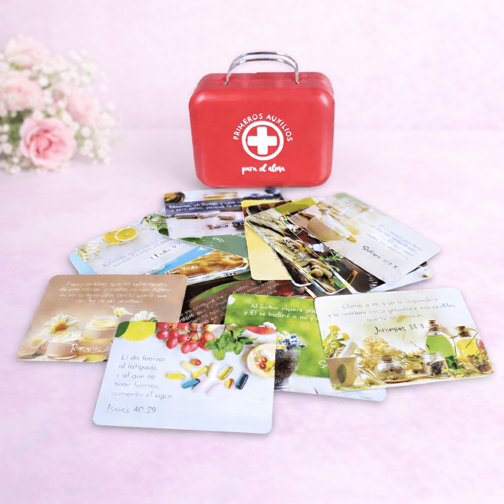 40 Tarjetas con Promesas Bíblicas en Caja Metálica – Primeros Auxilios para el Alma