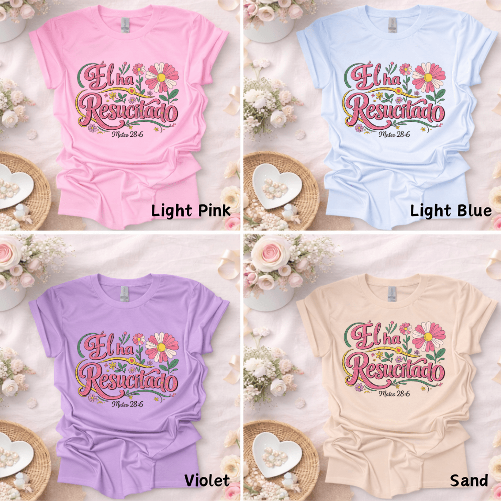 Celebra la victoria más grande de nuestra fe con este hermoso diseño inspirado en Mateo 28:6: “Él ha Resucitado”.